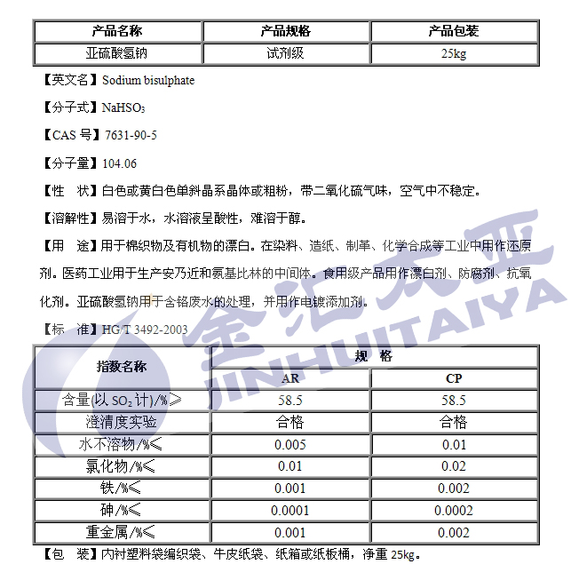 产品类别:硫酸盐---亚硫酸氢钠